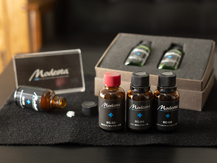 「Modesta BC-S2」 は、高耐久性、高い滑り性と高撥水性能を持たせた新開発のセラミックコーティングです。